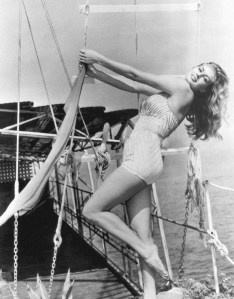 The other day, an old picture of Anita Ekberg popped up on my Twitter feed. It was a grainy, black and white photo—back when I was growing up, photos were mostly black and white  —of the Swedish actress I’d never seen before, posing on a sailboat at sea, wearing an old-fashioned white bathing suit, with dark, ominous clouds gathering in the background.